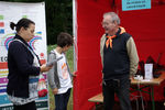 e stand ECRITSIMAGES avec ses simulateurs de descente de rivière en kayak installés sur PC portables.